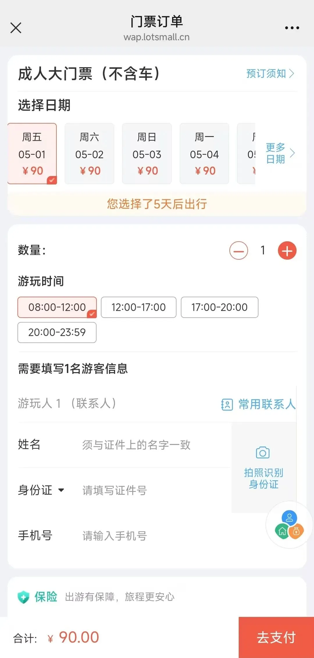 游客在购票时请根据自己行程安排提前通过线上实名制分时预约购票,分时预约时段分为四个时段:08:00-12:00,12:00-17:00,17:00-20:00,20:00-23:59,购票时需一人一证;国内居民以本人身份证原件作为身份凭证,外籍游客以本人护照原件作为身份凭证;港澳台地区居民游客以本人返乡证原件作为身份凭证。