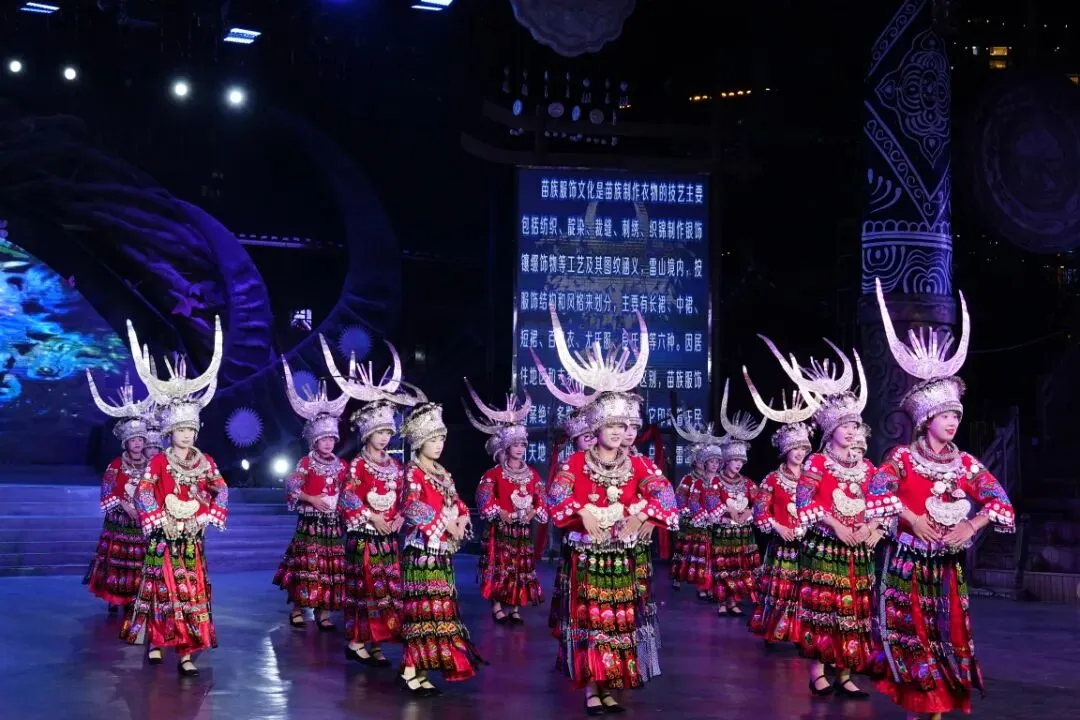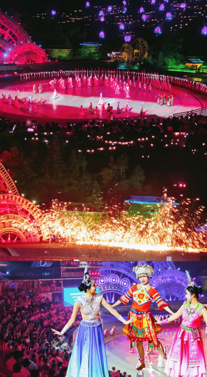 美丽西江歌舞晚会:铜鼓铿锵,芦笙悠扬,盛装银饰映着灯火,《美丽西江》用原生态演绎,诉说苗族的史诗与风情。
