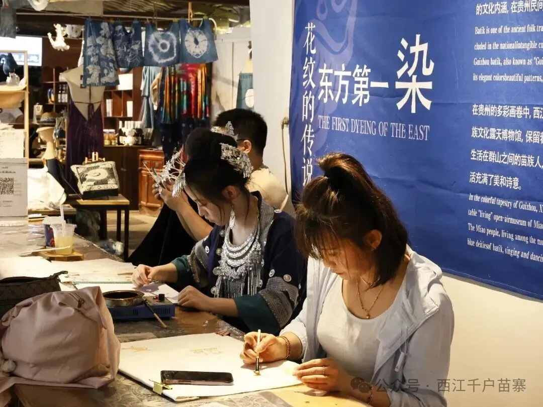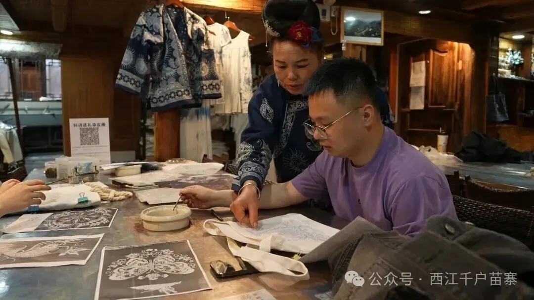 苗草田蜡染体验店:藏在田园观光区的 “治愈角落”,既能免费围观蜡染师傅创作,也能付费亲手尝试 —— 从勾勒图案到浸泡染色,全程参与制作专属蜡染作品,把苗寨的色彩带回家,再也不用跟景区手作体验区的人群 “抢位置”。