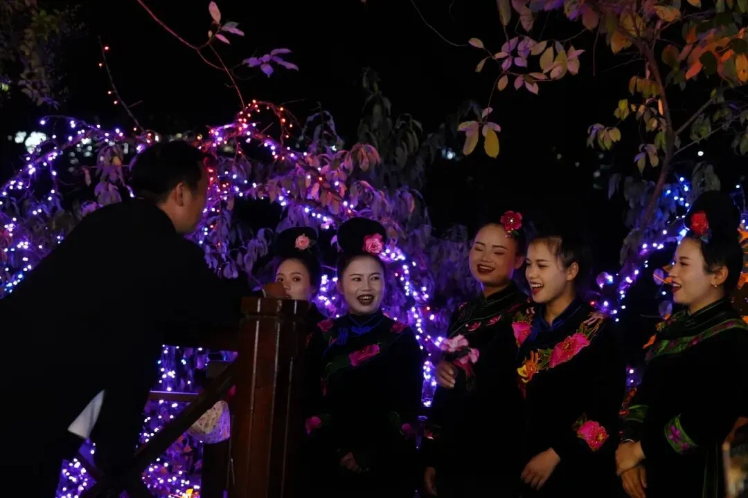 苗族音乐演奏(田园观光区零号风雨桥旁):深夜的苗寨褪去喧嚣,芦笙、木叶等传统乐器奏响,适合反向游的家庭静静聆听,独享苗乡夜晚的宁静与浪漫。