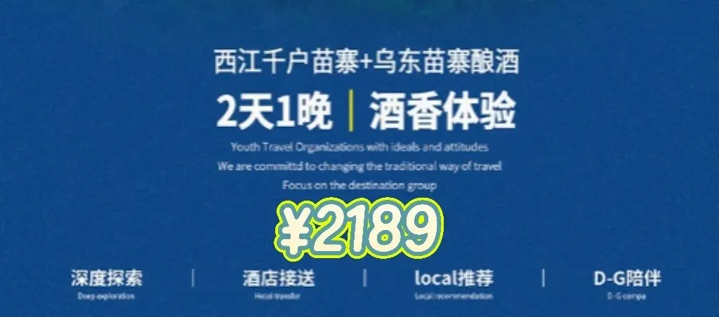 抵达贵阳 → 前往西江千户苗寨walk→观景下午茶→蜡染主理人→苗寨夜景→宿西江 →自由活动或休整