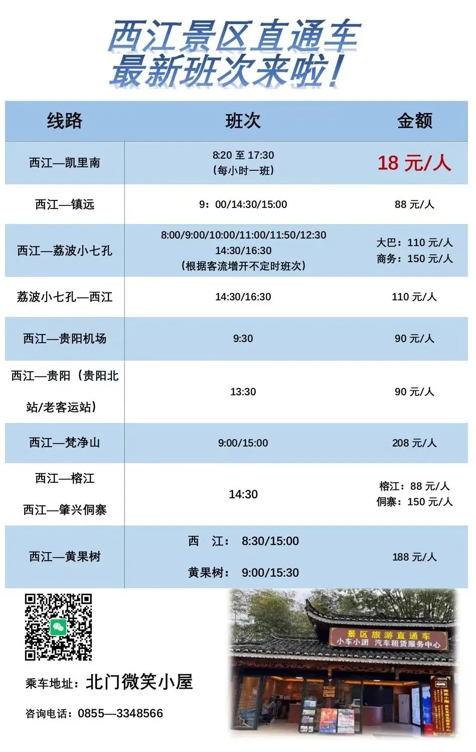 • 大巴出行:贵阳、凯里等周边城市均有直达西江千户苗寨的旅游大巴,贵阳龙洞堡机场、贵阳北站也设有直达班车,具体班次可通过“贵州客运”公众号查询。