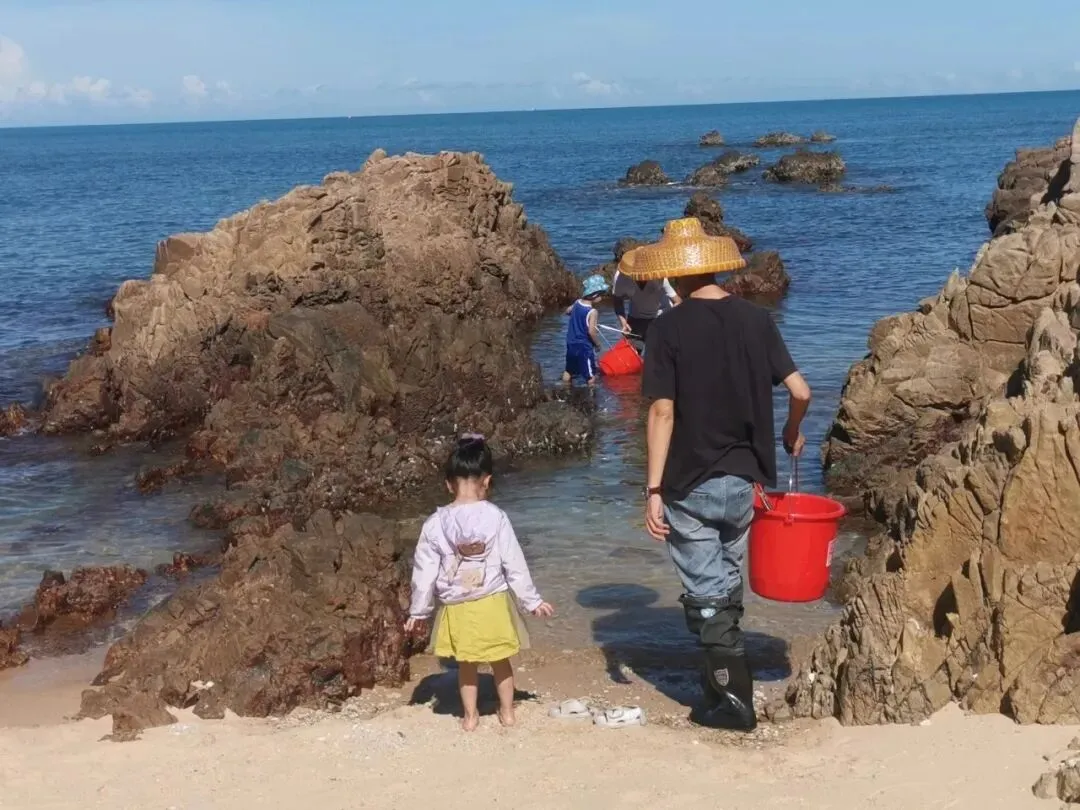 棋子湾的中角绝对是宝藏赶海地。这里礁石嶙峋,退潮后就是一个个天然的盲盒。提前查好潮汐表! 选个大退潮的日子,带上小桶和夹子,寻找小螃蟹小虾,挖螺捡贝壳。