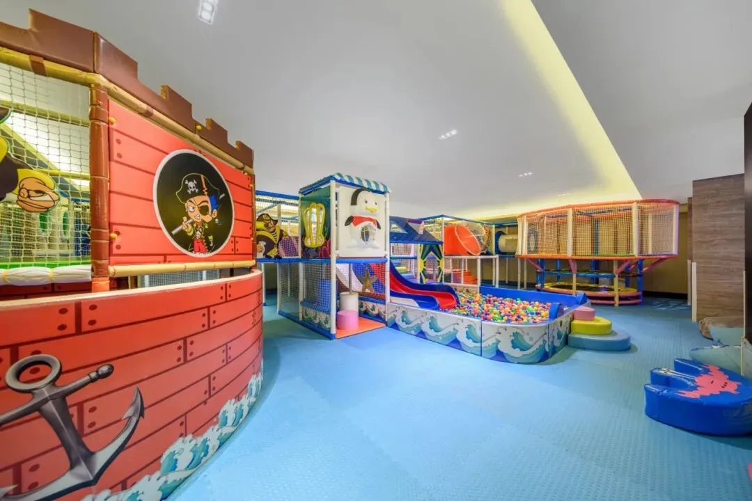 酒店有专属的儿童水上乐园和室内乐园,娃可以玩滑梯、海洋球;带娃体验黎陶手作、酷飒射箭、飞驰卡丁车。