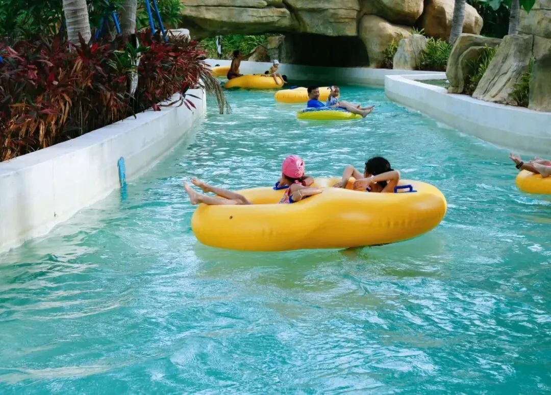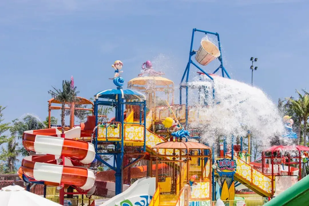 此外还可以带娃冲进超大水上乐园,在水寨里迎接翻斗桶的“倾盆洗礼”,在滑梯上体验速度与激情。如果娃还小,儿童戏水池和懒人河漂流也很好玩。