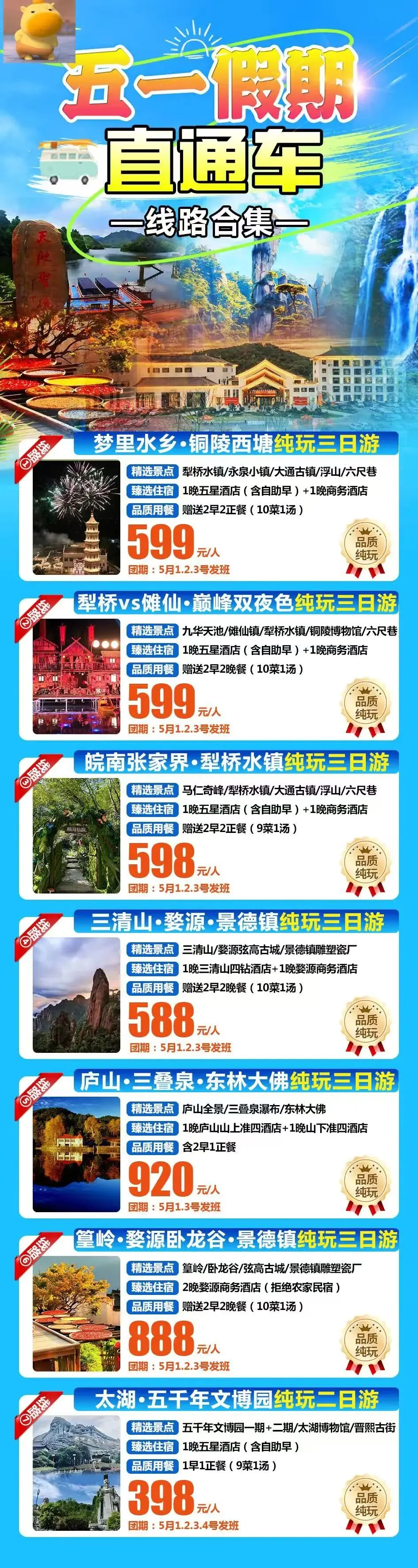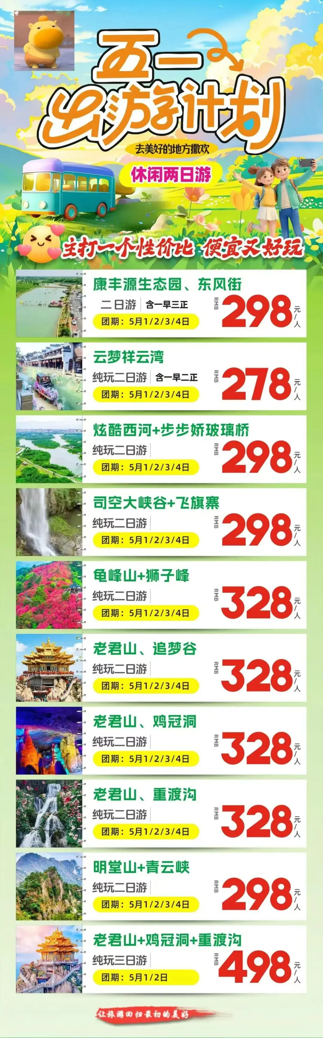 武汉出发,五一假期去哪里玩?周边短线旅游,1日游、2日游、3日游,五一旅游计划,五一武汉周边旅游!