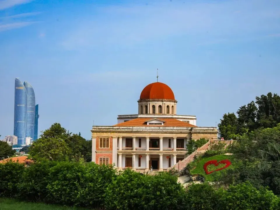 1893年,美国于现址修建驻厦领事馆,原建筑毁于1904年一场大火,现存领事馆建筑是1930年翻建的。所用红砖全部从美国进口,带有浓烈的美国古典复兴建筑色彩。