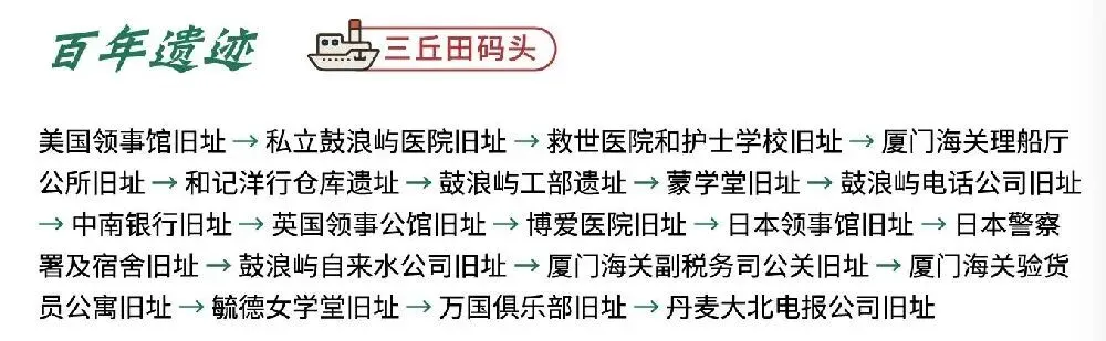 最后:皓月园 → 三丘田码头从皓月园沿着海边步道慢慢走回三丘田码头,大概1公里,15分钟左右。路上可以一边看海景,一边看看鼓浪屿的老建筑,节奏放慢一点。建议下午4点左右往回走,尽量避开返程高峰。
