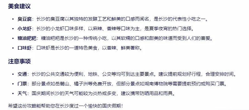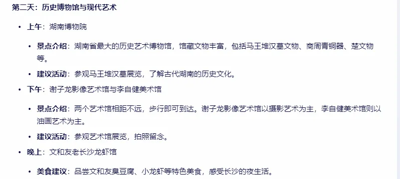 当文心一言化身导游,他的长沙游行程如下: