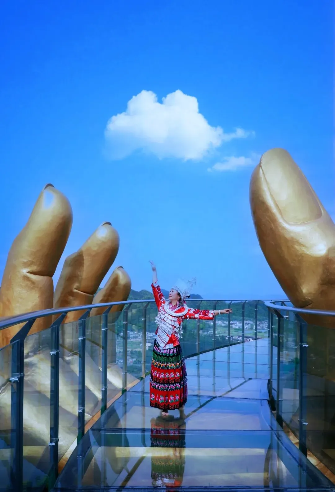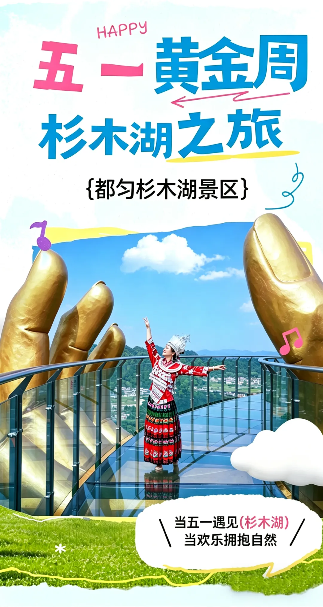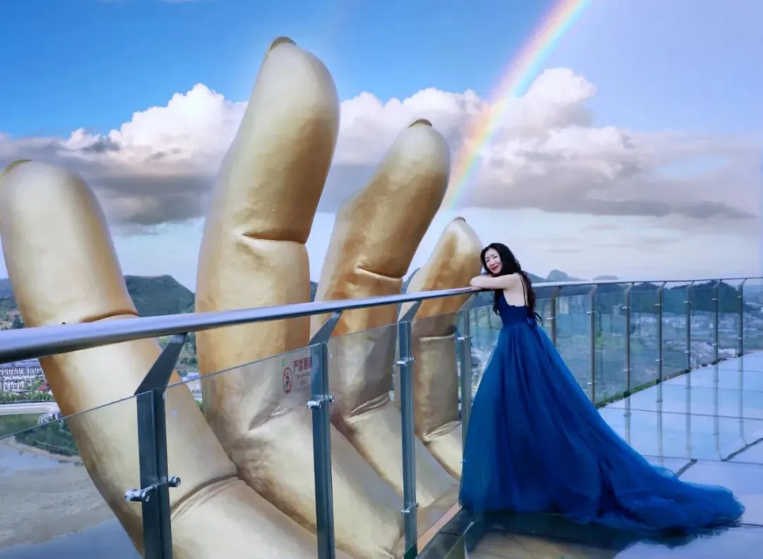 五一期间杉木湖景区推出挑战赛: 在“大地之手”玻璃观景台最佳拍摄点打卡,发盆友圈即可换取小礼品(大地之手祈福带),五一快来打卡领取吧~