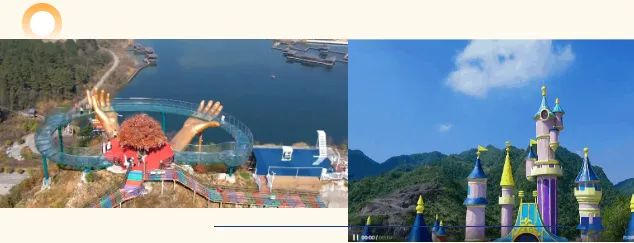 园区有环湖小火车、爱丽丝仙境湖面划船、粉丝迷宫、魔法城堡....