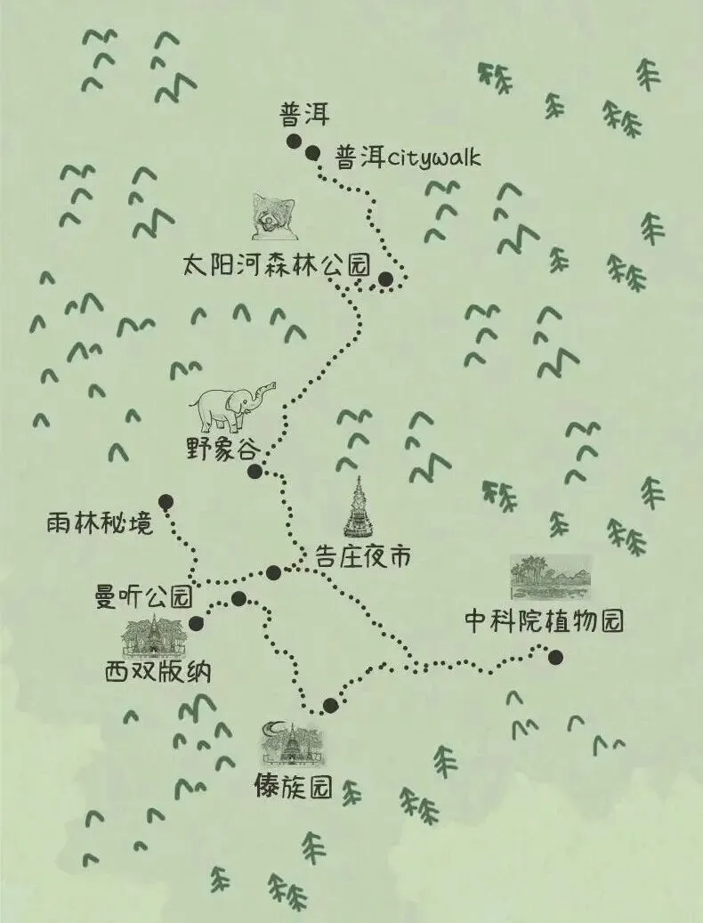 D5太阳河森林公园-普洱市区CITY·WALK-景洪机场