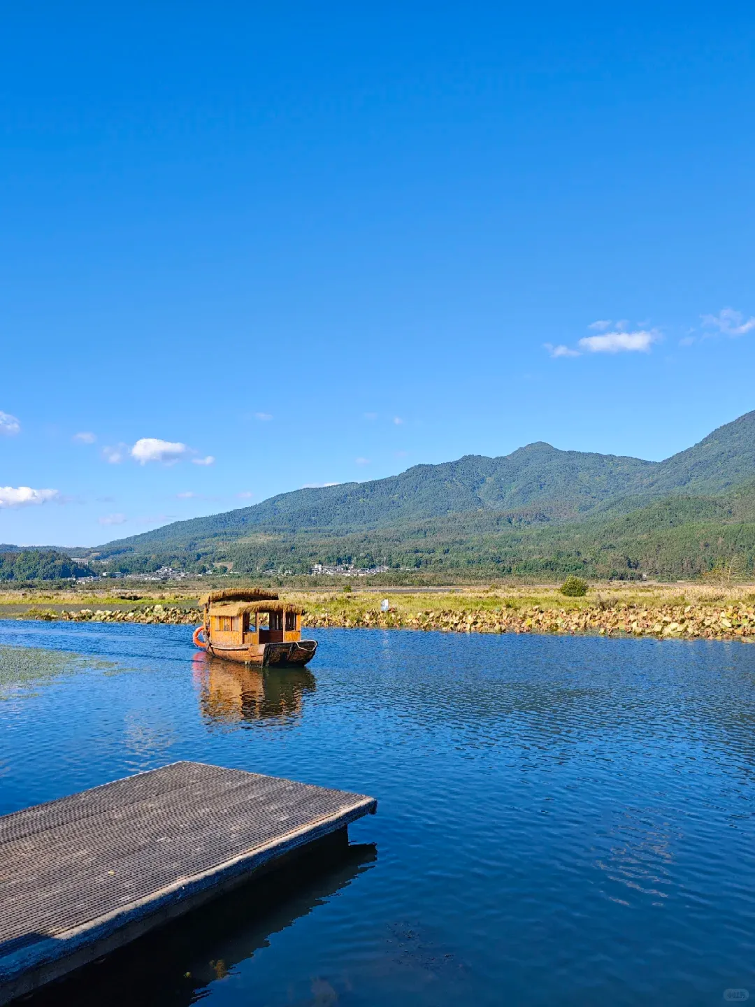 北海湿地是一片高原湖泊群,最特别的体验是乘坐当地特色的“草排”——一种用湖中水草捆扎成的筏子,用竹篙撑着在宁静的水面上滑行。四周是丰茂的芦苇和菖蒲,还能看到各种珍稀鸟类。