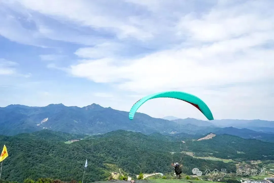 来大觉山国际滑翔伞基地,让我们踏上飞翔之旅!在山顶俯瞰远处的城镇、田园风光好不惬意!