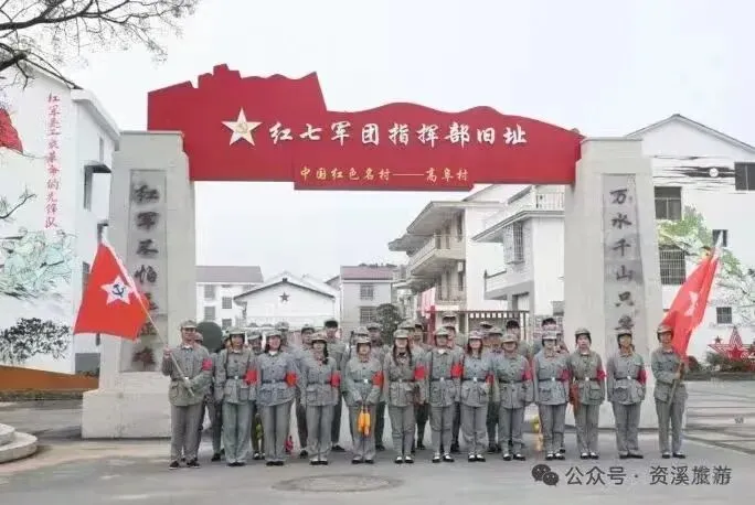 参观革命旧址、感受艰苦卓越的革命奋斗历程,红七军在高阜镇战斗的英勇故事,存放红军曾用过的军号、军服,回味那段烽火年代,追寻红色印记。