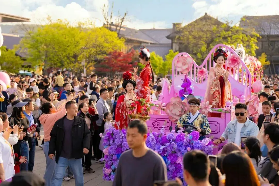 五一期间,十二花神将身着绮丽华服、衣袂翩跹,沿着香月花街缓缓巡游,一路载歌载舞,一路撒花送福🧧。