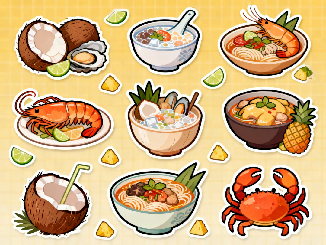 冬瓜海螺汤、青椒蟹、马鲛鱼、芒果螺、抱罗粉、加积鸭、东山羊、文昌鸡、糟粕醋、清补凉,每一口都是三亚的地道风味,解锁海岛鲜爽口感。
