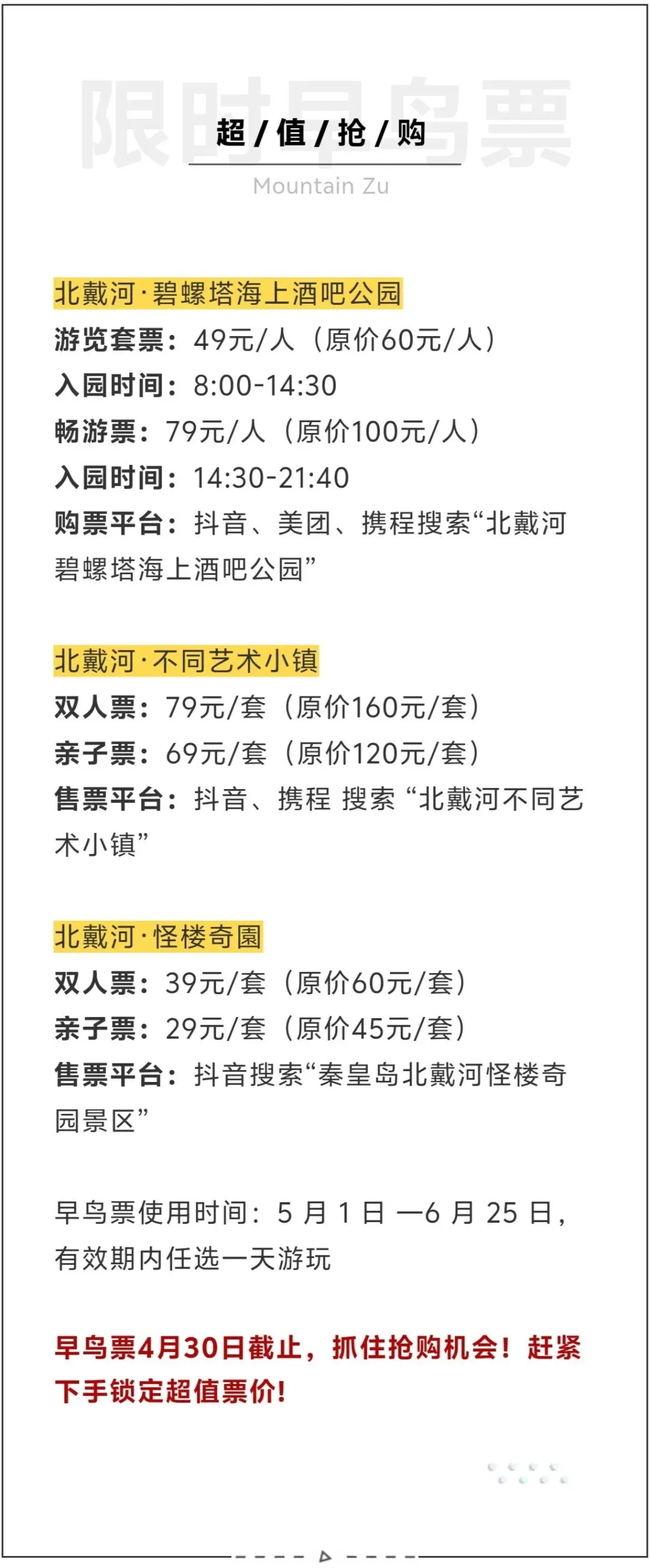 五一去哪玩?攻略来了!不同文旅集团旗下三大景区:北戴河·碧螺塔海上酒吧公园、北戴河·不同艺术小镇、北戴河·怪楼奇園5月1日正式营业!