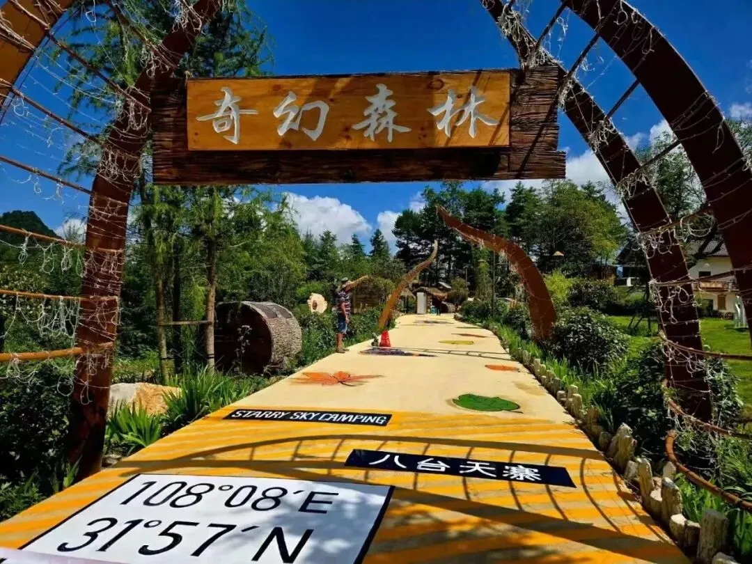 八台天寨·星空营地位于城口县双河乡天星村5组(龙坪),以“一轴四区”布局多元住宿,包含装配式建筑、复式房间、房车营地、房车平台、帐篷营地等,可同时接纳500余人住宿。营地集露营、餐饮、亲子、研学、生态体验等多种业态于一体, 配套有无动力游乐场、山地卡丁车、马场、萌宠乐园、垂钓、书吧、生态体验、自行车、观景平台等业态,丰富了游客观星游玩乐趣。
