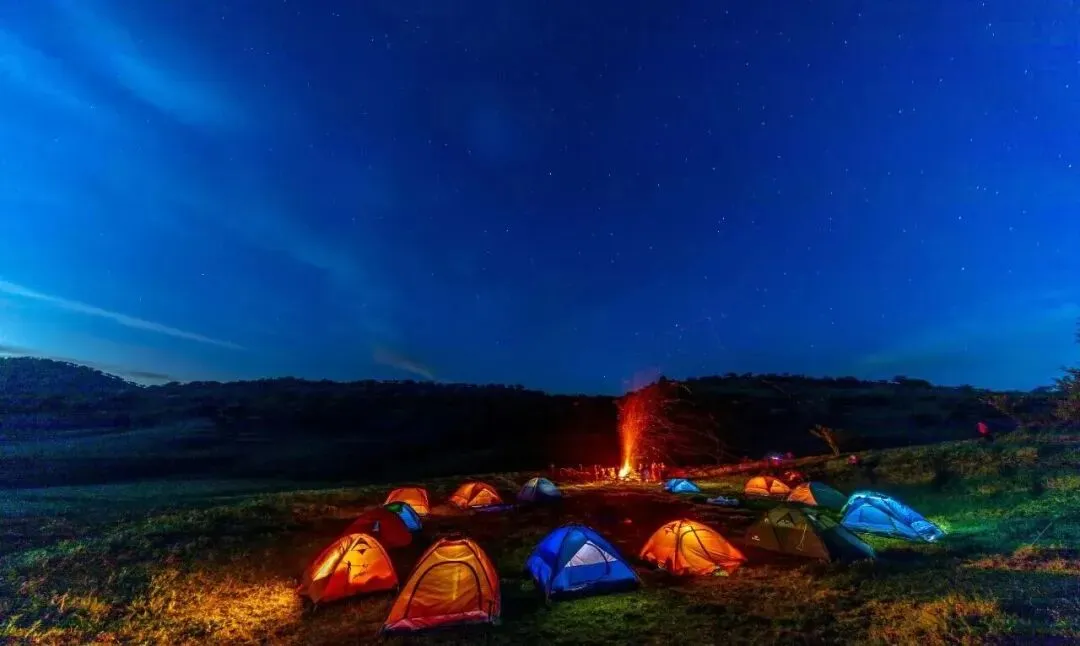高山天然草场,是黄安坝科普教育基地最具特色的景观之一,位于东安镇兴隆村,平均海拔在2200米以上,仿佛一块巨大的“天上牧场”飘飘渺渺,若隐若现,五一来这里观星赏月、户外烧烤露营主打一个洒脱随意。