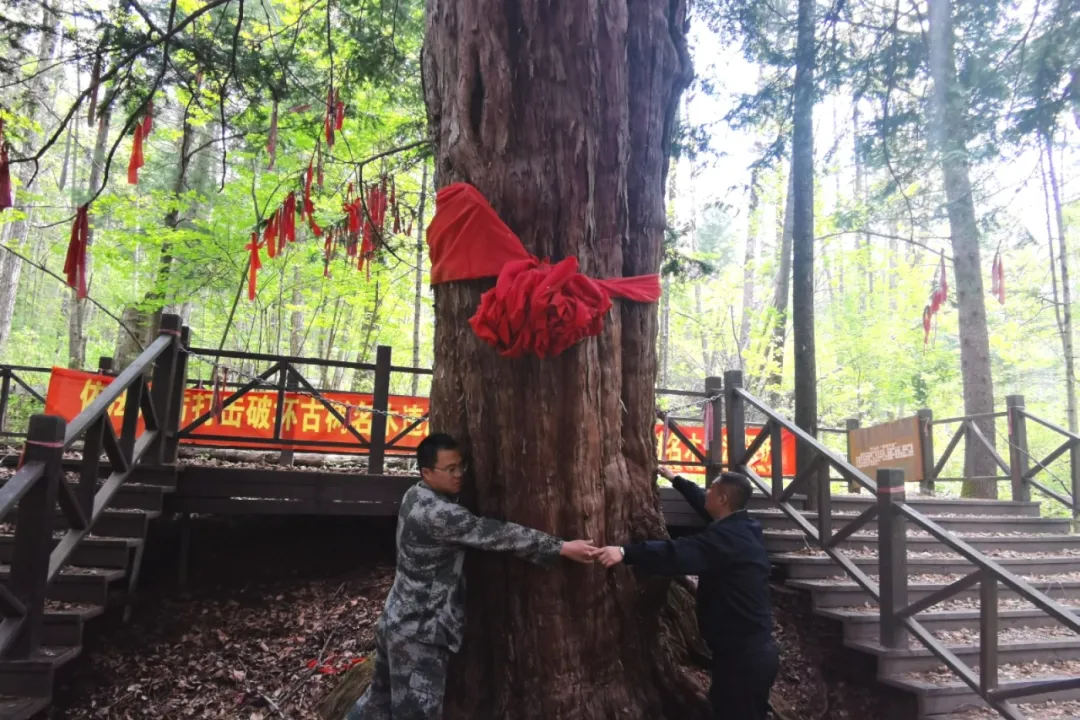 位于汪清县金沟岭林场,东北红豆杉又名紫杉、赤柏松,有植物王国“活化石”之称,是国家Ⅰ级保护植物。古树高18米,胸径1.22米,已有2500年的树龄,枝干粗壮,笔直挺拔,三人合抱方能将其揽入怀中,树皮红褐色,片状剥裂,裂片里面紫红色,枝繁叶茂,果实如繁星点点,数不胜数。