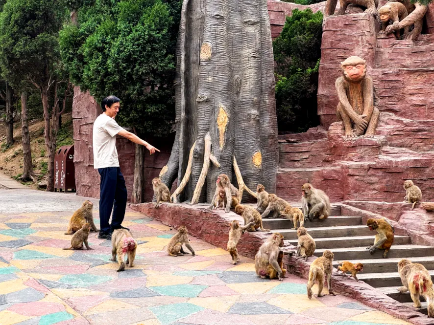 景区入口 → 猕猴王国(看猴+西游仙魔团表演)→ 十里画廊(峡谷风光)→ 桃都山(传说打卡)→ 金鸡顶(登山观景)→中华猕猴园(传统猴戏表演)
