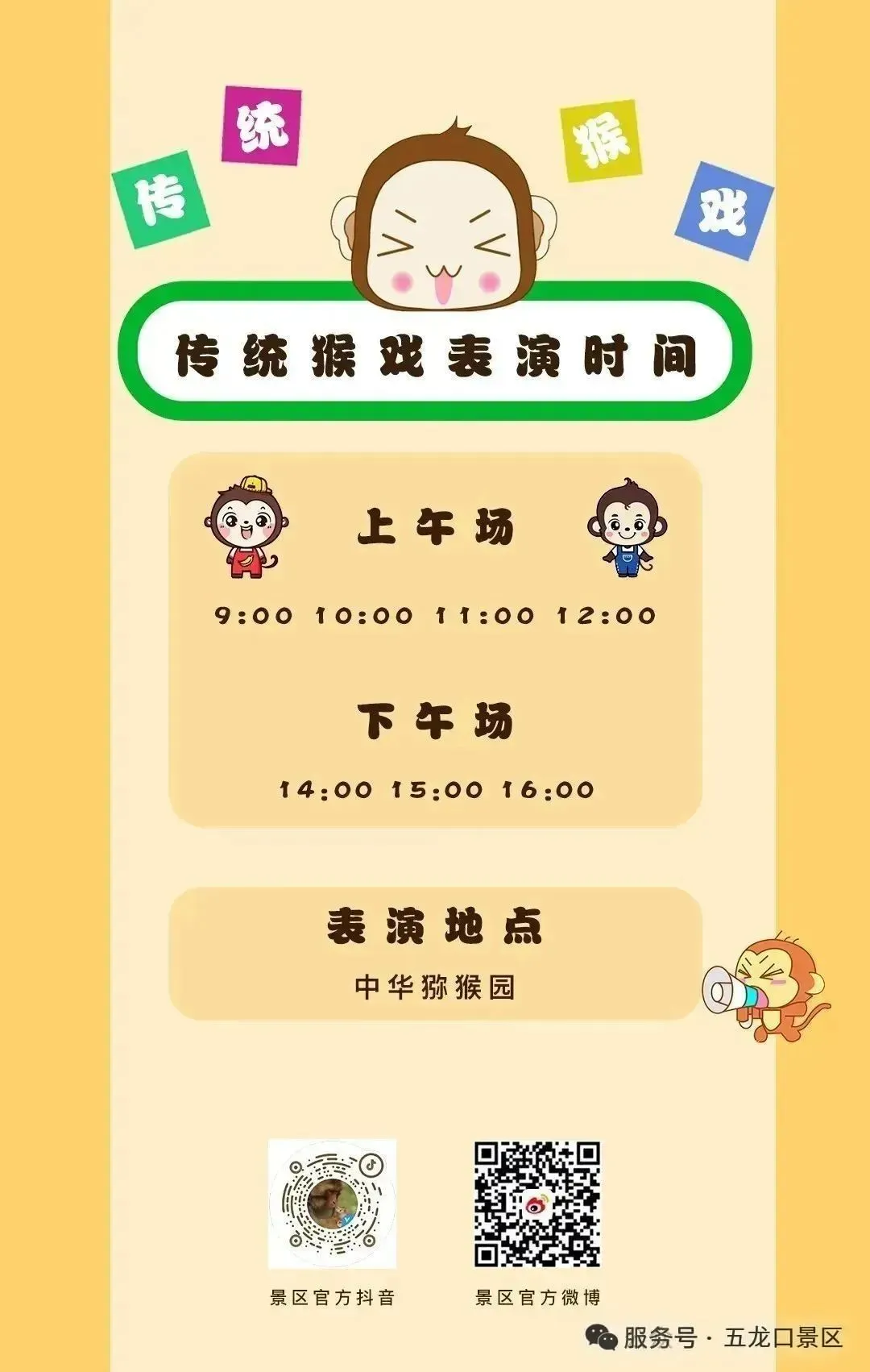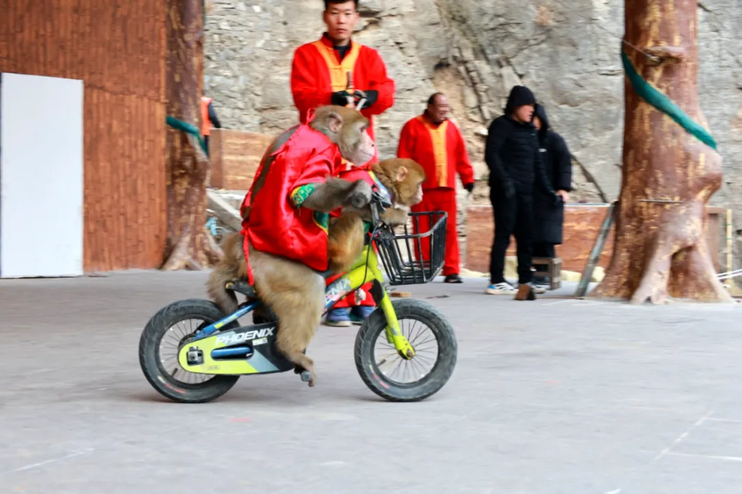 传统猴戏表演:每天多场定时表演,猴子骑单车、走钢丝、升旗等,适合带娃观看。