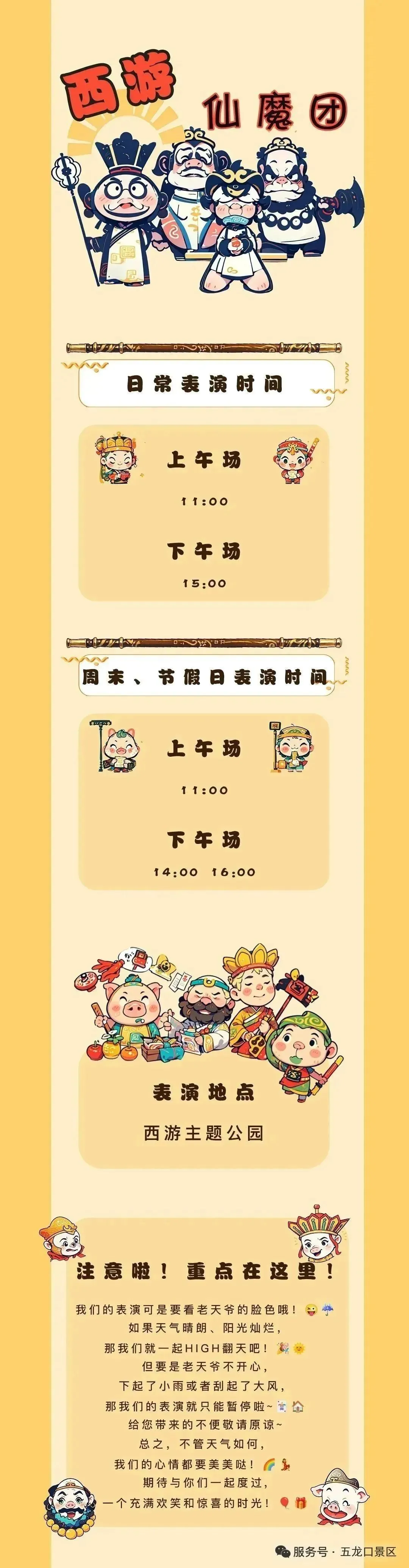 西游仙魔团:景区内全天候沉浸式角色互动与情景表演,五一期间正常上演。