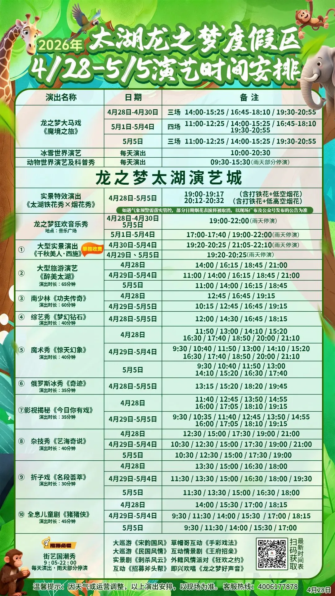 实用攻略 | 太湖龙之梦4月28日-5月5日各业态游玩资讯