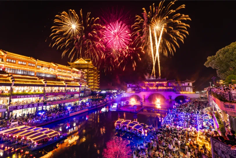入夜乘船看璀璨烟花,