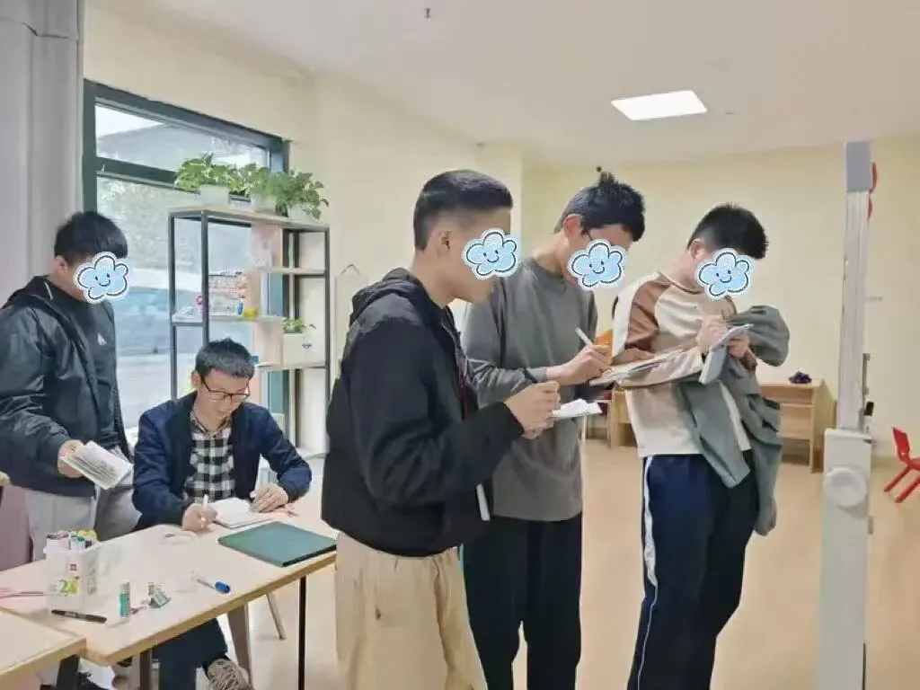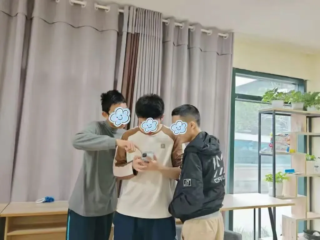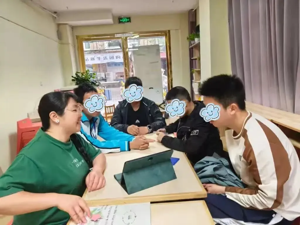半个月没见面,大家的默契丝毫没减,你一句我一句就把课堂细节还原得八九不离十。今天还挖出了好多超有趣的小发现:比如Xi哥会突然起身脱衣服——大家秒懂:他不想让校服上的logo被拍进去。这是对网络安全的觉察。我们让每个人轮流说出一个“发现”时,大家还是做到了:wh发现:“Yiyi上厕所一直没出来,特别是我们总结文案的时候。” xi哥发现:“上节课用的卡片,都是虫子老师用剩下的,背面还有字。”N哥发现:“在讨论什么时候去重庆的时候,Y老师对虫子老师说‘五一去重庆人太多,周末两天去是可以的’。”Yiyi发现:“上周蓝丁胶把墙壁撕了两个洞。”每一个“发现”,都是一次向外看的练习。