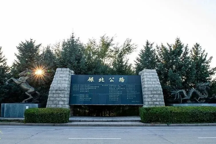 碾北公路起点位于黑龙江省与内蒙古交界处,在此修建了雄伟的黑龙江省门标志——龙马雕塑。巨龙象征着腾飞的黑龙江,骏马象征着马背上的民族蒙古族;雕塑同时也象征着两省和睦相处、团结奋进、共同致富的精神;数万筑路大军逢山开路、遇水架桥、日夜奋战的龙马精神。省门两侧耸立着56根钢柱,它的建筑寓意是从日本投降的1945年到2001年,碾北公路沿线的老百姓天天想、年年盼,盼了56年,这条金光大道终于修成,56根柱上的不锈钢球,就是百姓盼望的眼睛,56根柱代表56年。