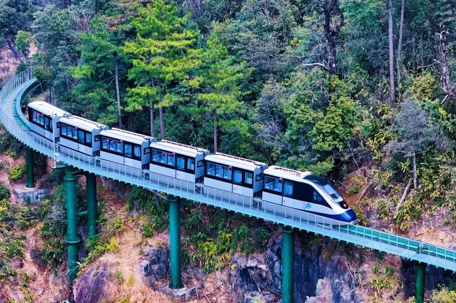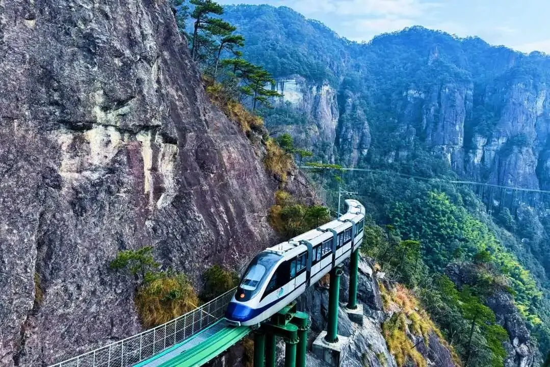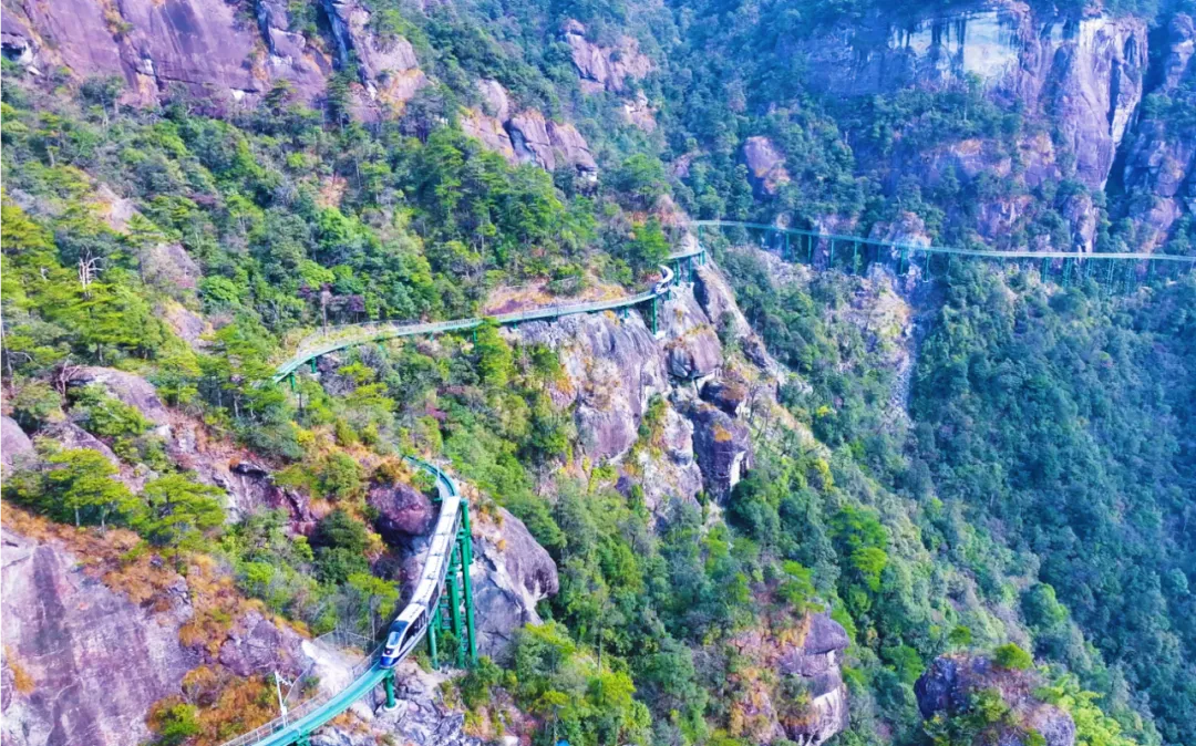 穿梭在峭壁之间的悬崖动车