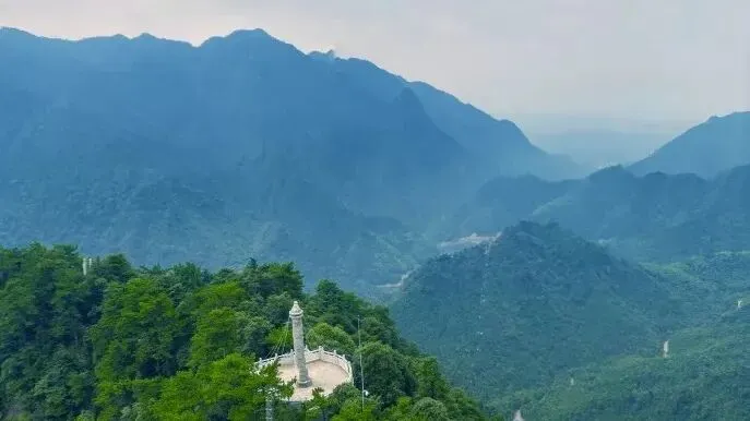 山峦层林叠翠,云雾缥缈缭绕