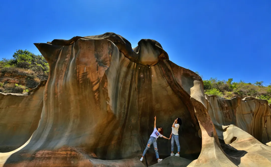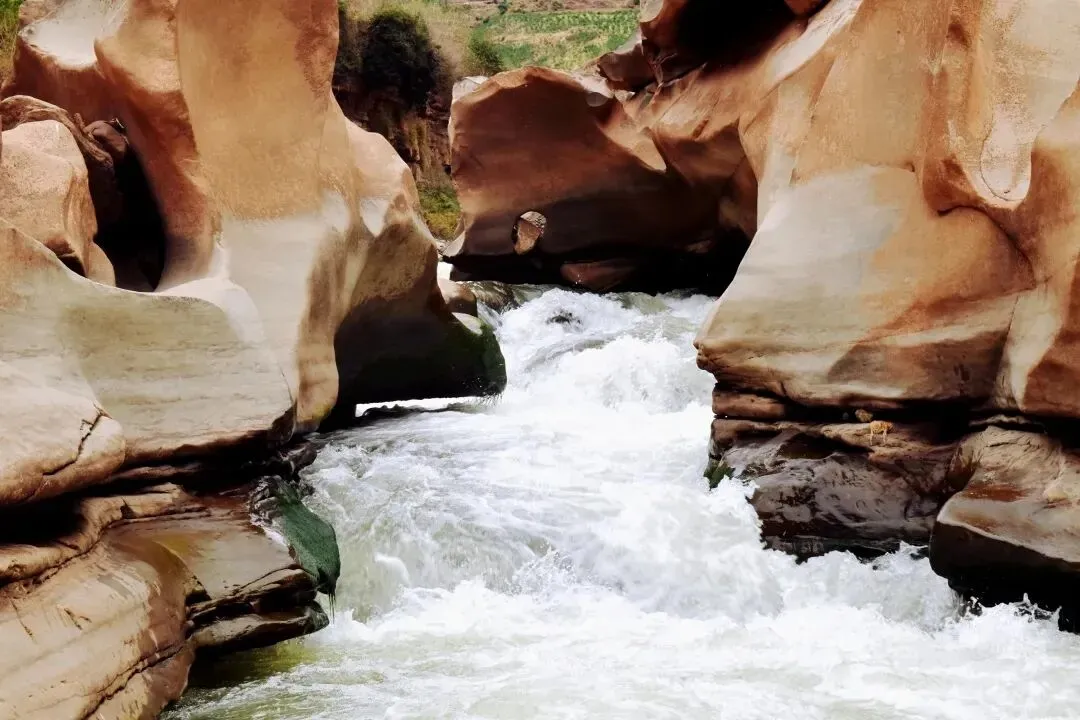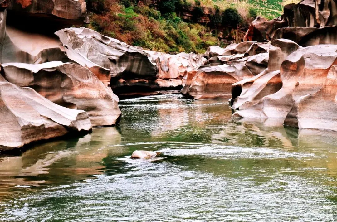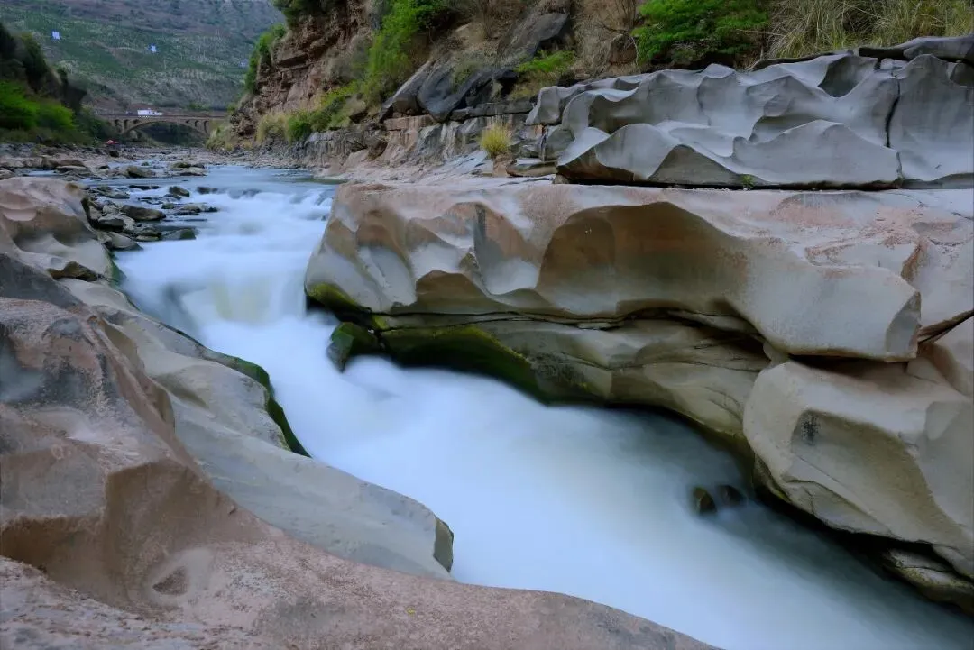 奇石谷景区内的壶穴地貌,因千万年来河流涡流中携带的砾石挖钻河床,并对坑穴的侧壁进行不断刮擦,经过长期磨蚀而成。