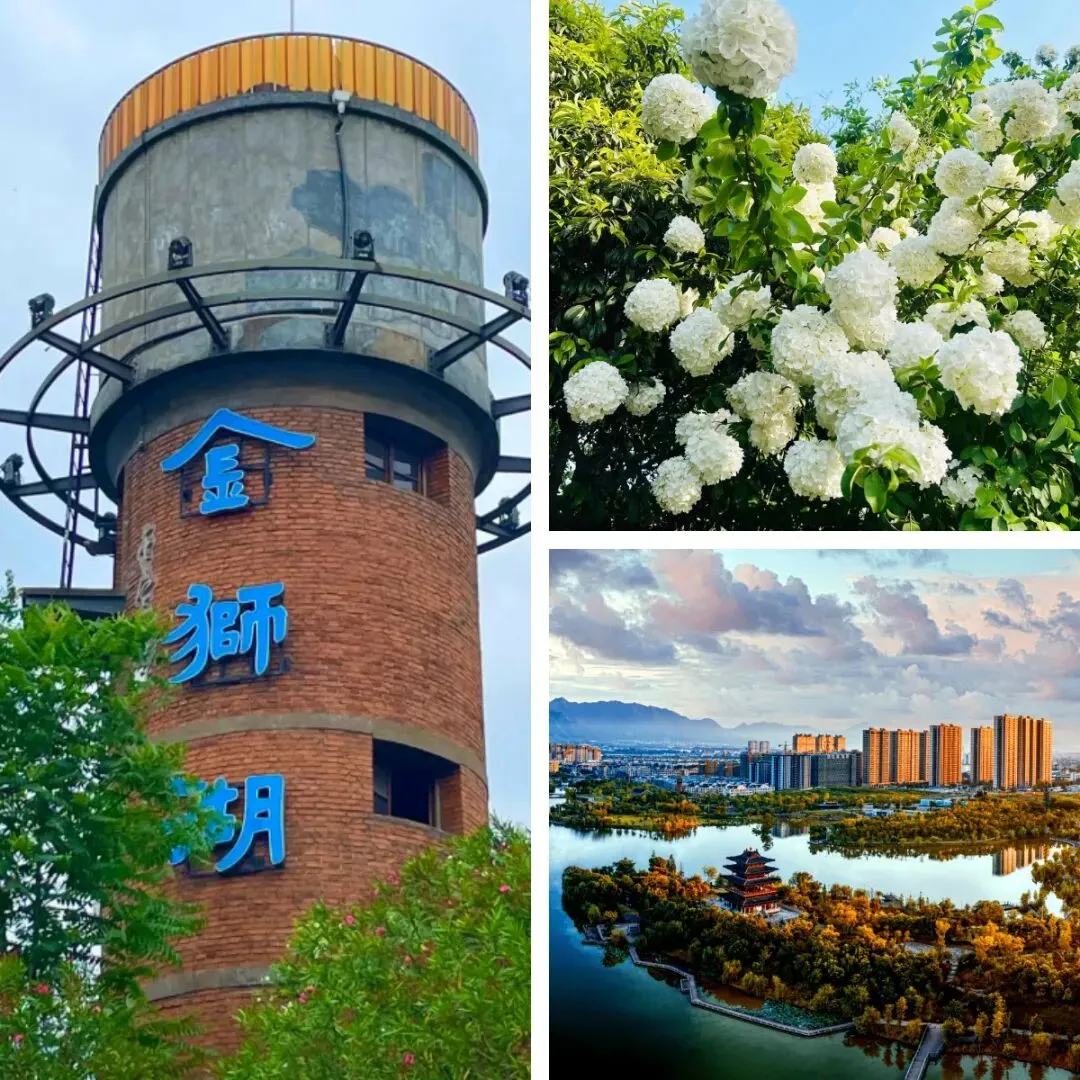 餐后前往金狮湖畔欣赏木绣球。4月中下旬正值盛花期,白绿相间的花球簇拥湖边,清雅柔和,与湖光相映成趣。