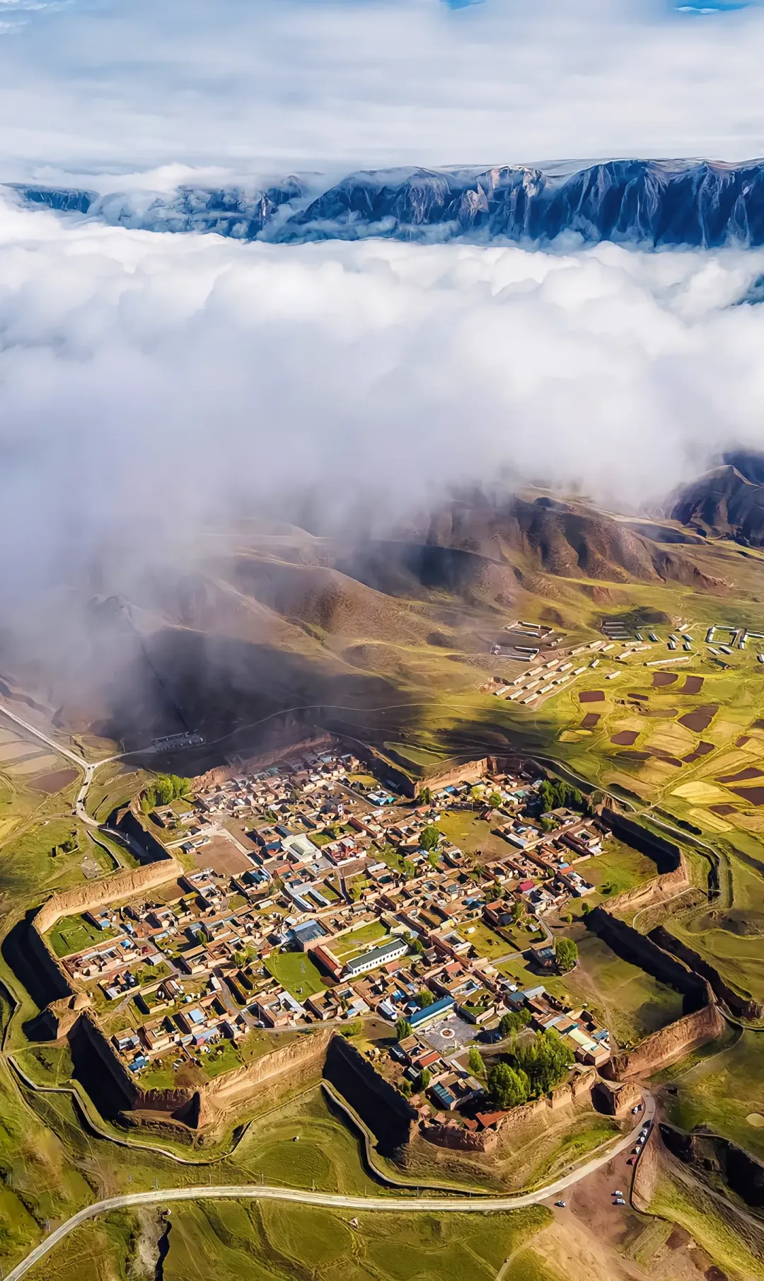 没来之前完全不在认知里、来了就觉得不虚此行的地方——灰白崖壁气势磅礴,2000多年历史的八角古城以罕见的卍字形布局屹立在草原上。