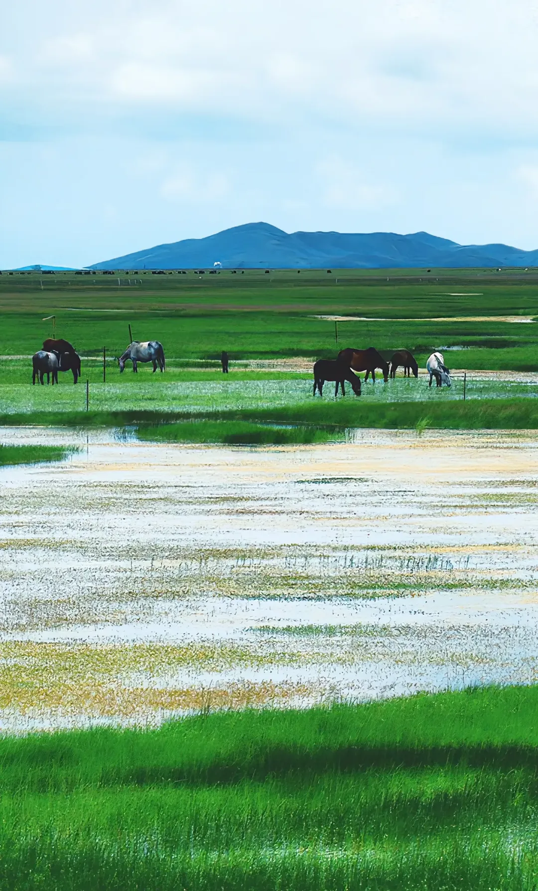 接着一个半小时车程到花湖——5到7月开花时,湖岸铺满格桑花和狼毒花,黑颈鹤就在旁边的湿地里悠闲,木栈道走一圈大约 ⏱️ 2小时。