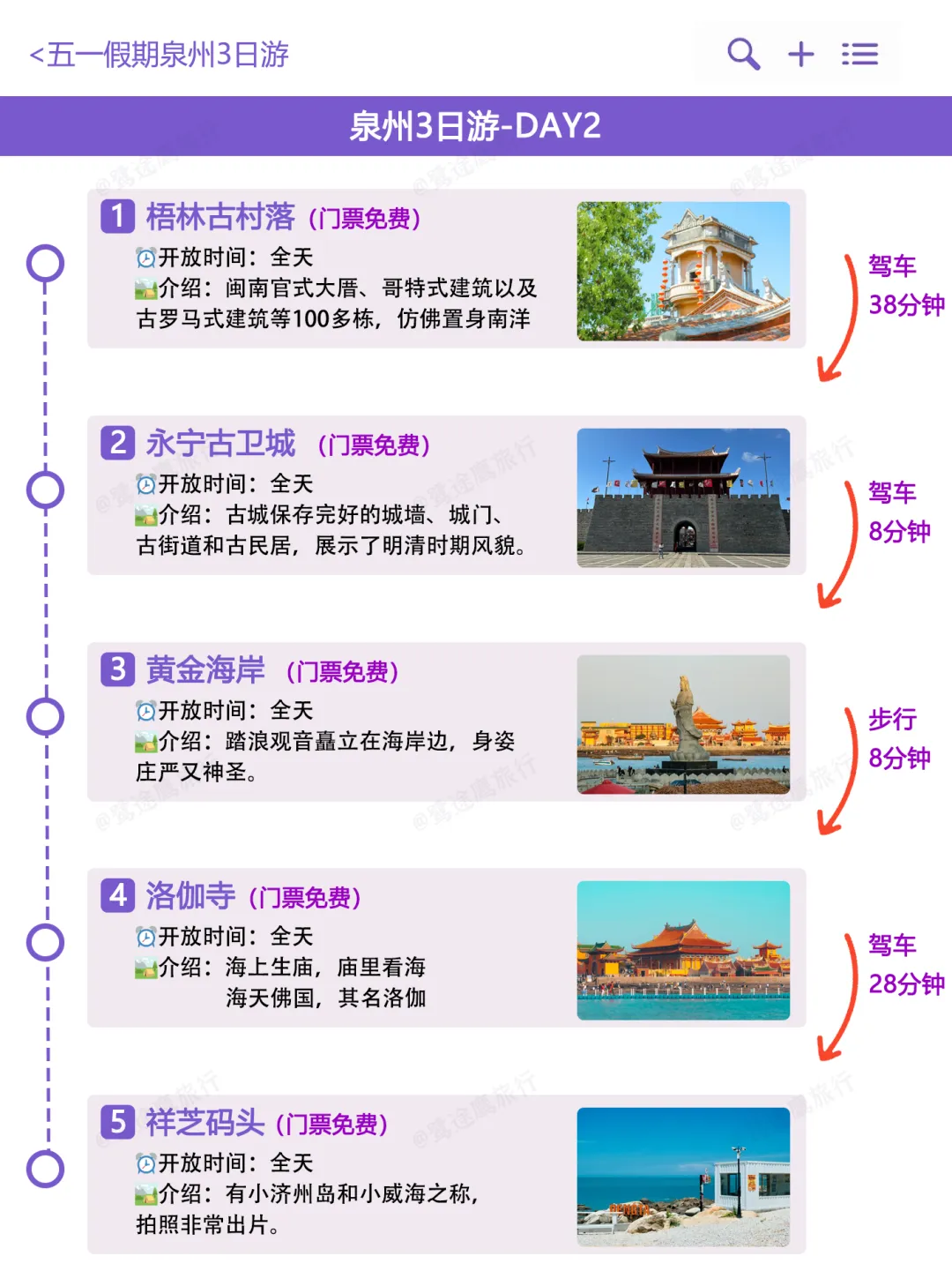 D2:梧林传统村落→永宁古卫城→黄金海岸→洛伽寺→祥芝码头