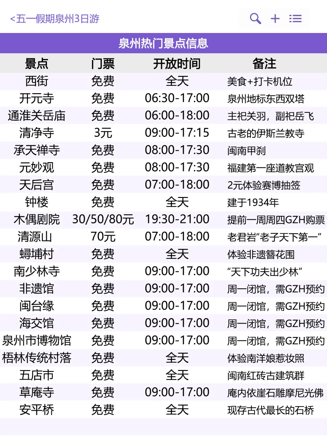 ✅五一假期泉州三日游路线