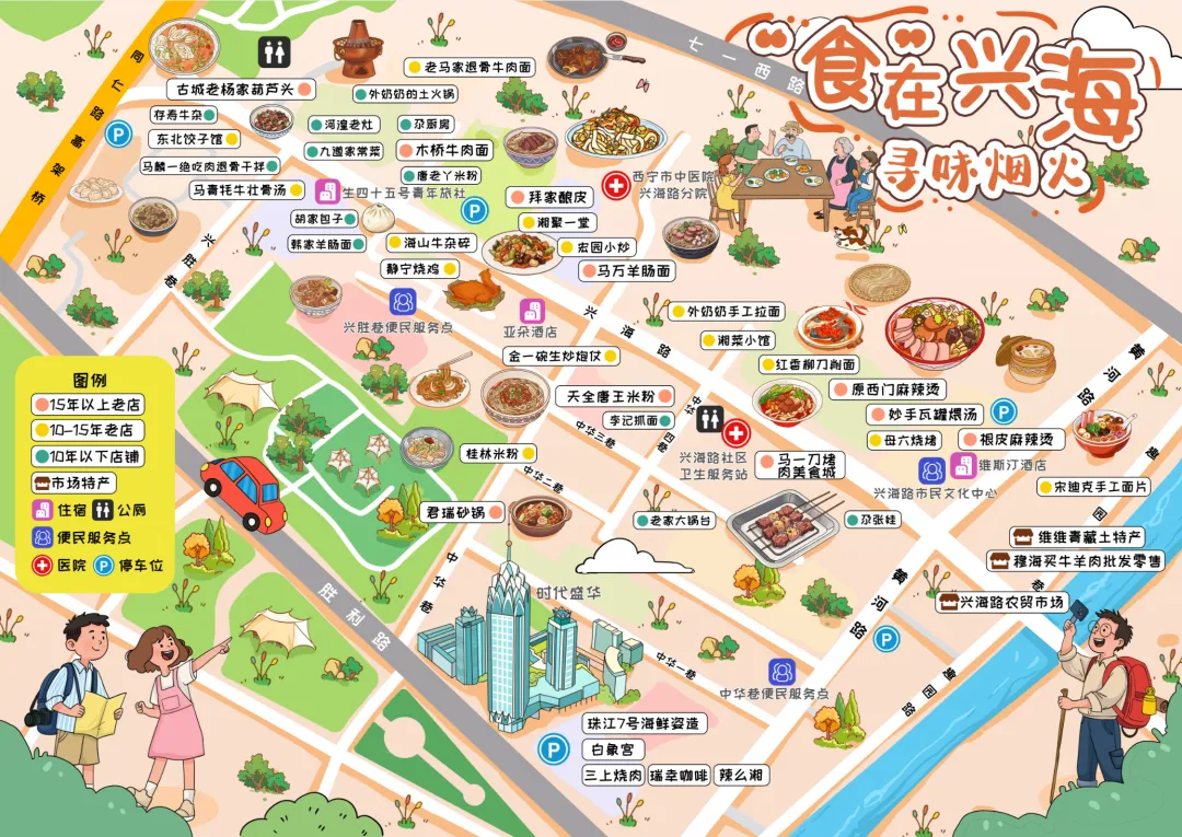 赏完花,肚子是不是开始咕咕叫啦?嘿嘿,别急,我们的美食之旅这就开始!沿着兴海路一路逛吃逛吃,这里可是隐藏着不少宝藏小店呢!