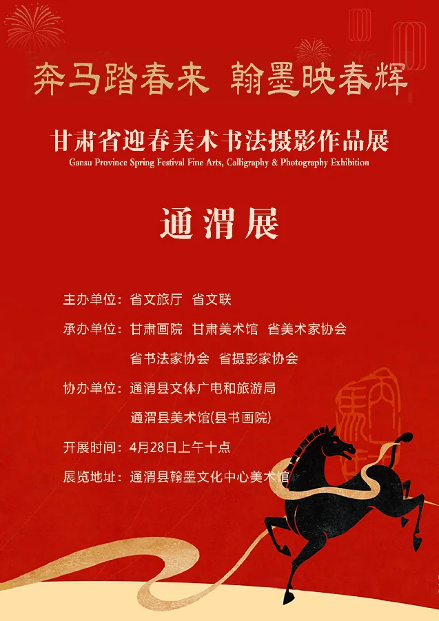内 容:举办“奔马踏春来•翰墨映春辉”——甘肃省迎春美术书法摄影作品展(通渭展)、定西市国家安全主题书法美术作品展、“丝绸之路·翰墨通渭”第三届中国画、油画作品展