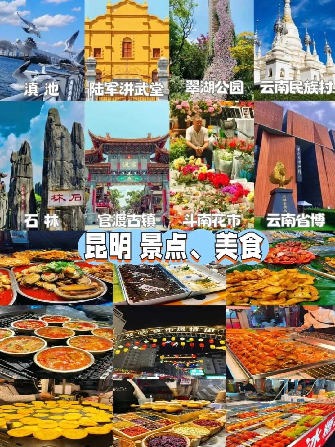 🍜 吃:晚上必须安排一碗地道过桥米线!推荐去建新园或者桥香园,都是老昆明人常去的店,鸡汤鲜到掉眉毛,配料又多又全,25-40块钱就能吃到撑;还可以尝一尝小锅米线、汽锅鸡,都是地道滇味,闭着眼点都不踩雷。