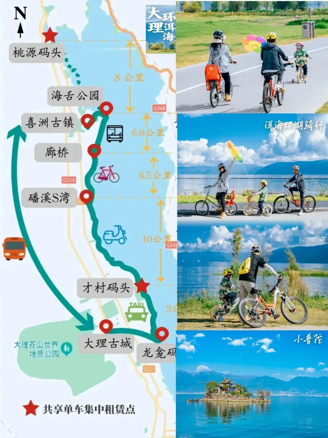 📍 行:早上在民宿吃完早餐,租一辆合规的电瓶车,淡季30-50块钱一天,续航完全够环海西线骑行,不用怕半路没电;沿着洱海生态廊道慢慢骑,吹着海风,看着湛蓝的湖水,真的太惬意了,网红S湾轻松就能解锁。