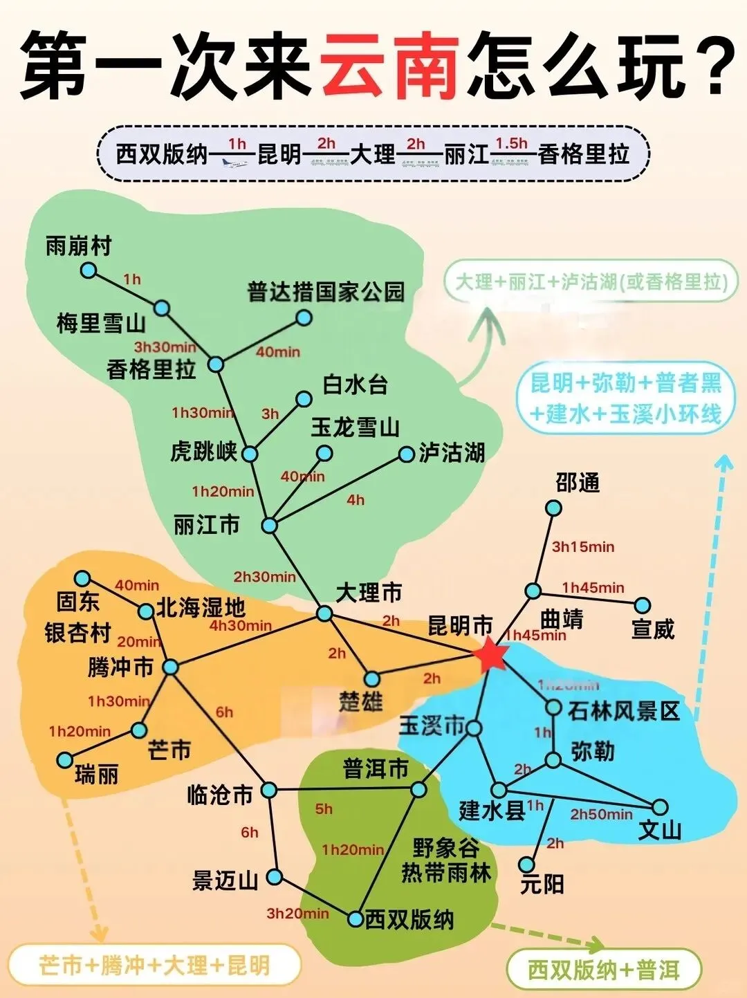 新手宝子真的不用做复杂攻略,经典4天路线省时又省力,想多玩几天、多逛点地方的,就选延伸路线,不管是深度慢游,还是全景解锁,都能感受到云南的温柔和浪漫。