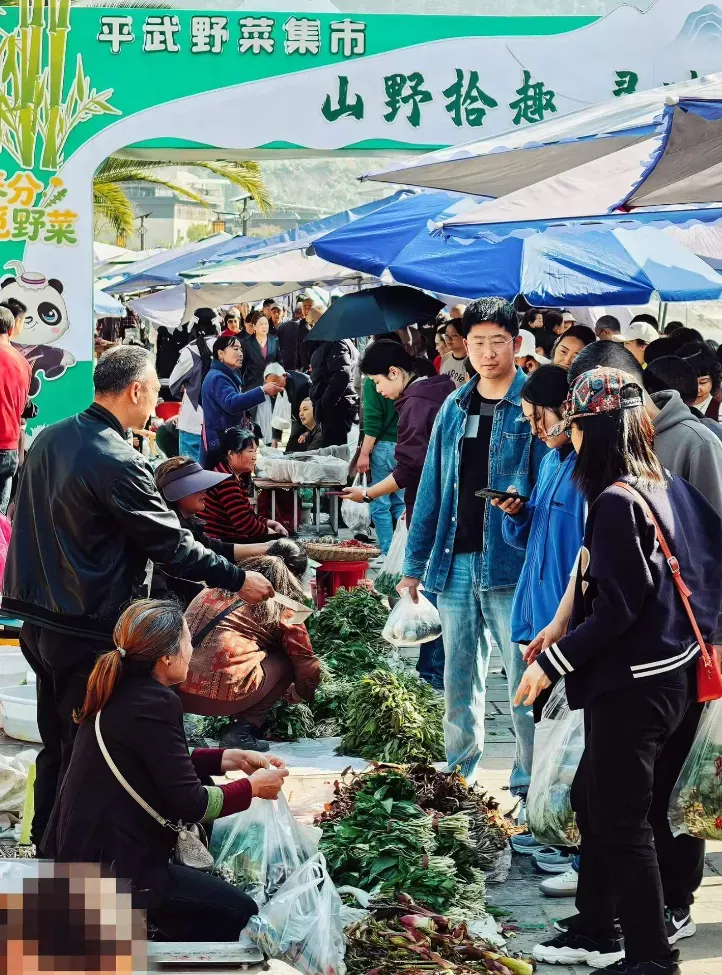 这个季节,平武野菜陆续上市,在县城的山野集市,各种野菜占据市场“C位”,更有成都、重庆等地游客为了尝一口春味 ,驱车几百公里来到这个集市“赶场”买野菜。