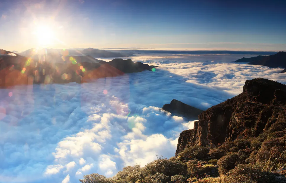 破晓时分,看第一缕金光穿透云海;入夜后,山顶又是绝佳的观星胜地,可搭起帐篷仰望璀璨星河。