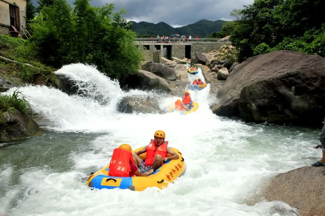 7.金沙水漂流景区位于防城区那梭镇稔稳村,是国家AAA级景区,充分融合“山、海、边、民”四大地域特色。景区核心项目峡谷漂流河道蜿蜒、水流湍急,惊险刺激又安全有趣,配套水上乐园、休闲烧烤区等设施,既能感受戏水狂欢的乐趣,也能放松休憩,是夏季与五一假期热门玩水目的地,推荐游玩半天。
