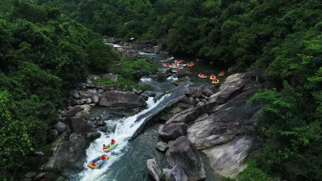 9.野人谷漂流景区位于防城区那良镇那楼村,是国家AAA级景区,是独具特色的原生态边境漂流景区。漂流河段保留天然溪流风貌,河道曲折有趣,两岸植被茂密,溪河探险漂流惊险与趣味兼具,可尽情感受山水间的清凉与刺激,同时可沿溪观光游览,欣赏边境原生态风光,推荐游玩半天。