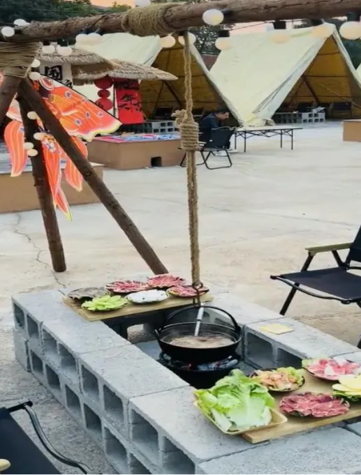 营地还提供围炉煮茶、挂炉火锅套餐,
